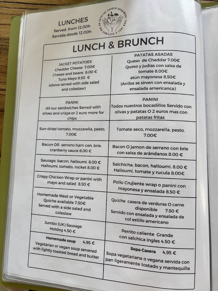 Welcome to Cafetería The Garden Room Campello, a delightful café and bar nestled in the vibrant heart of El Campello. This charming spot offers a diverse menu that caters to all tastes, with an impressive selection of both English and Spanish dishes. Whether you're in the mood for a hearty English breakfast or a refreshing vegan meal, you'll find something to satisfy your cravings.
